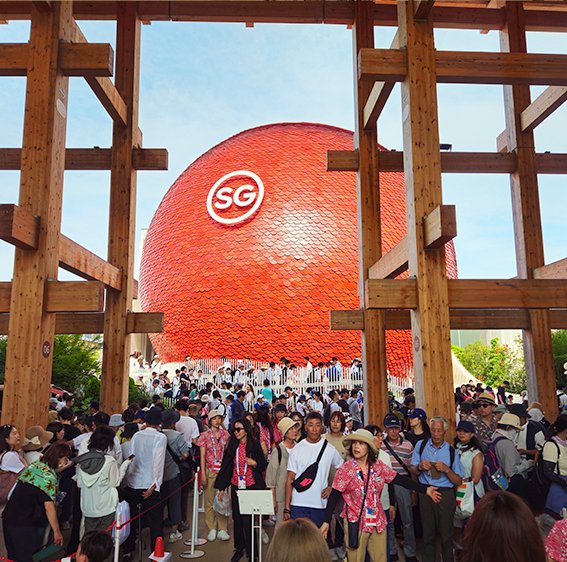 Yumeshima Mega-Solar at Expo 2025 Osaka Overlooking Gundam Pavilion and Bay Skyline
